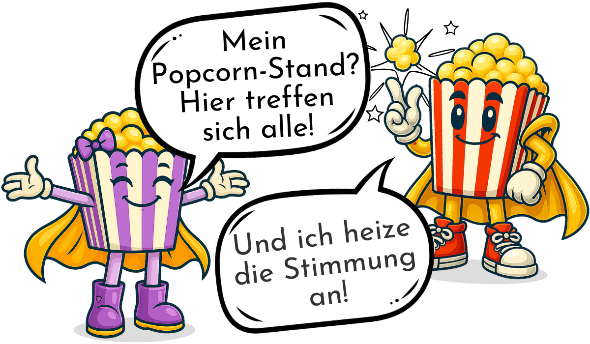 Mit PopcornHeld baust du dir dein eigenes Event-Business auf: flexibel, profitabel und mit einer Marke, die Menschen sofort begeistert. Du brauchst kaum Startkapital, kein Vorwissen und keine großen Investitionen – nur Lust auf Begegnungen, Freude und ein wenig PopcornMagie.